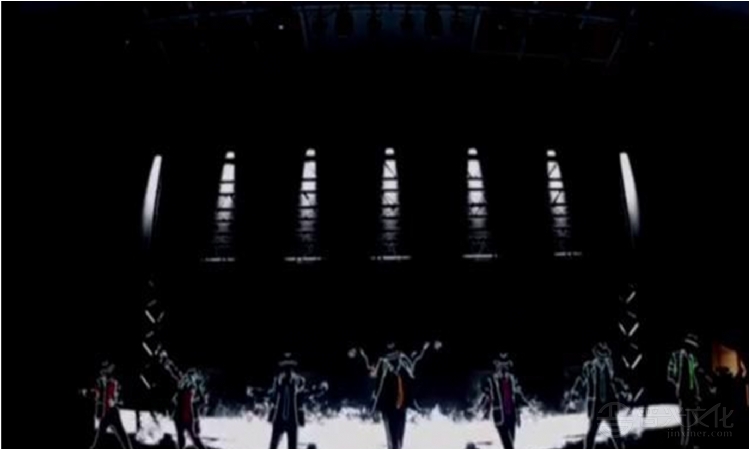 《MJ·幻影秀》迈克尔·杰克逊经典舞蹈融合光影光电科技,加入了跟LED屏幕的互动可添加企业、logo文字,MJ经典的舞蹈动作结合大屏幕时尚的特效画面和动感的音乐,效果震撼、气场强大、给观众呈现不一样的视觉感受,打造不一样光电视觉冲击