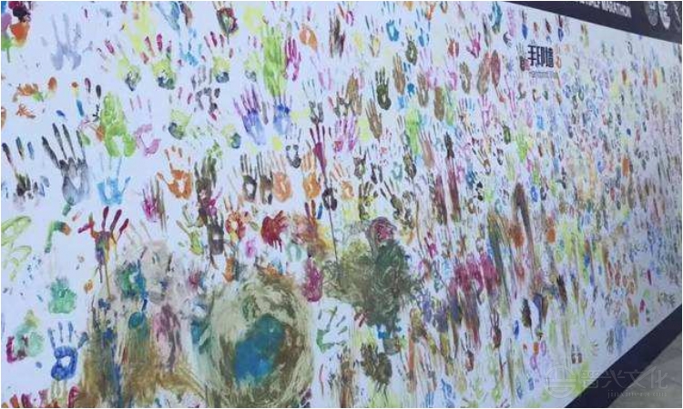 每一位嘉宾在礼仪的指引下,压上自己的手印,签上自己的名字,留于纪念与珍藏;也可每一小块图拼成一个大图