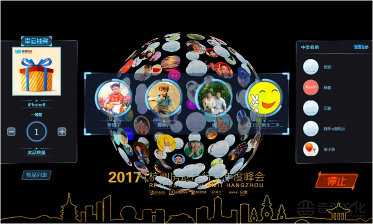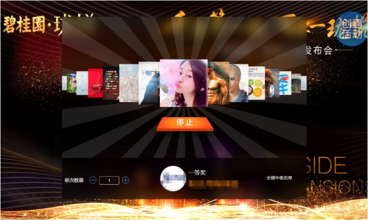 通过大屏幕,参会者头像转动,点击停止即可抽取对应数量的幸运儿。