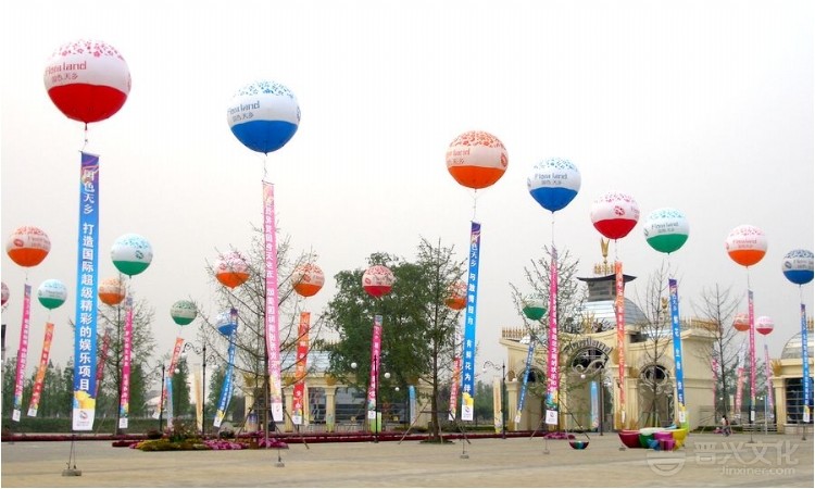 空飘氢气球是用氢气瓶或空飘氢气球专用充氢气球机充满氢气用绳索固定在地面或物体上,飘飞在空中的比较大的氢气球,一般用于庆典场面挂条幅标语,军事上用于瞭望或安装无线电发射天线。