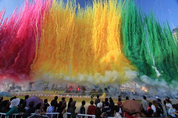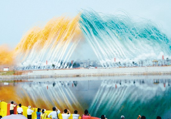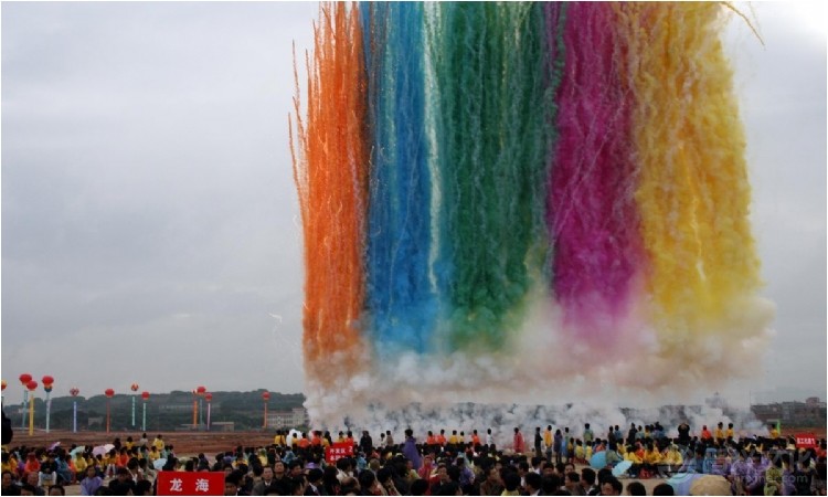 彩烟又名日景彩烟,以彩烟彩纸结合声、光、电、空间特效为辅助手段,运用创新烟雾生产技术,生产出适合白天节庆开幕,舞台舞美特效编排的庆典彩烟、舞美彩烟、高空彩烟。其燃放效果具有红、黄、蓝、绿、橙等多种艳丽色彩,同时伴有清脆悦耳的笛声,或是五彩缤纷的彩带,或银龙般的亮光,燃放高度可达三十米;组合后形似彩色瀑布,或七彩祥瑞,或彩色花束…产品广泛用于:节庆开幕,庆典礼仪、舞美特效、演艺活动等。