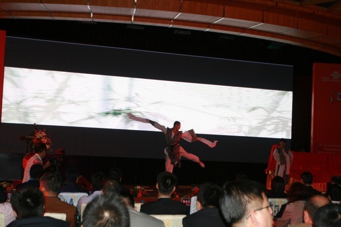 似飞腾狂草、和刚柔并进的太极描画丹青般的一招一式的精彩表演,在整个的舞台空间,塑造出一种古雅、端庄,充满中国传统舞蹈文化体态形象,在演员和视频互动情景交融、人与自然浑然一体中达到含蓄蕴藉、言有尽而意无穷的艺术境界,营造了一个恬静、雅致、高远的意境。