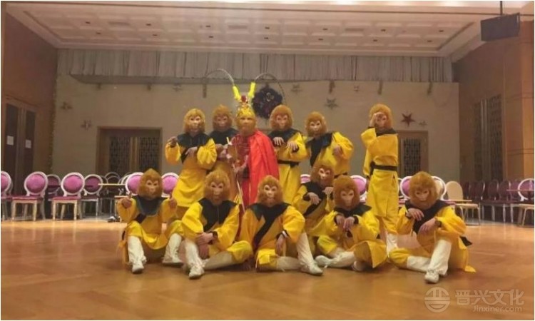 金猴闹春由8到12人真功夫武术表演节目,表演内容为孙悟空带领群猴从天而降,震撼归来,2到4名旗手,4到6名小猴。小猴们敲鼓摇旗,呐喊助威,孙大圣闪转腾挪,上下翻飞,全场进行高难度特技表演。现场气氛热烈,极易使观众产生西游记特有的难忘回忆和奋进向上的积极感染。