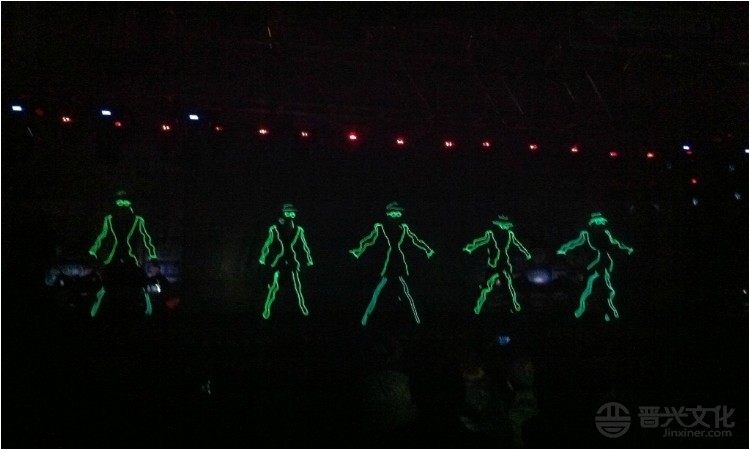 更多的舞者配上电光服装,加入新的表演形式,画面更加气势磅礴,融合武术和舞蹈的动作,配合动感音乐,使整个舞蹈变换无穷,加之出神入化的电光效果彻底将你的视觉震撼!