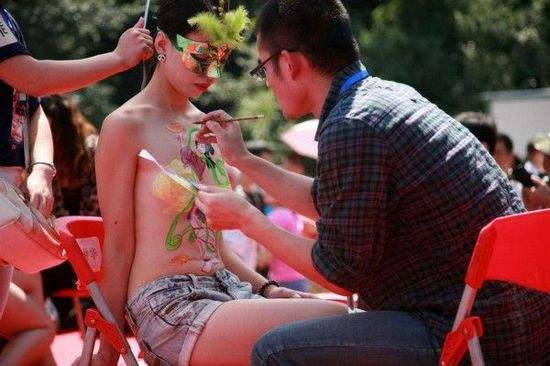人体彩绘,又称纹身彩绘,即在光滑的皮肤上,用植物颜料绘出一件美丽的华服,具有特殊的美感。一般来说人体彩绘不伤害皮肤,也不怕水洗,无疼痛感,色彩鲜艳,图案多变。人体彩绘有在模特全身、四肢、胸腹做绘画,也有简单快速在手臂、脸庞等处做画,每幅小图案3-5分钟不等,互动性趣味性极强。