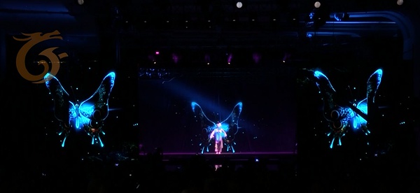 开场舞《蝶变》,引用高科技3D全息投影技术,融科技、创意、音乐、舞蹈于一体,将真实与虚拟对接,挑战视觉感官,给观众带来不一样的艺术体验。精湛的演出,艺术的震撼,亦真亦幻的多维立体效果,让在场的每一位嘉宾都沉浸在美轮美奂的虚拟景象中!