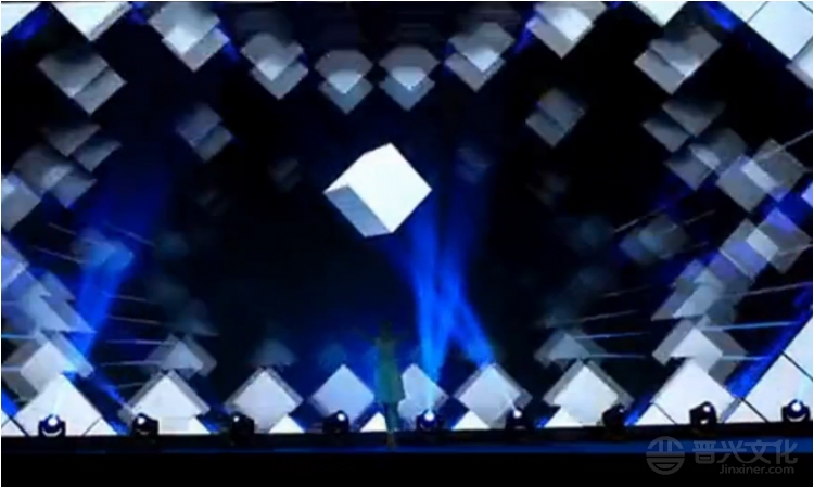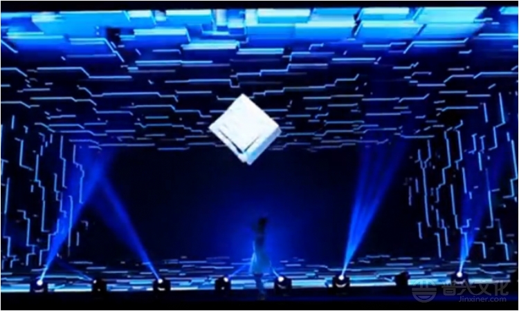 《志在四方》以3D立方为主元素,多维度抽象变化,在舞者的引领下结合光影特效,为来宾带来一场全感官视觉盛宴。 蓝色主调营造未来、科技、创新感,科技、商务、金融领域首推。