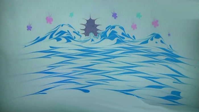 水影画是使用水和油脂类颜料运用油水分离的原理进行高技巧作画的表演艺术形式。用底部投射有白光的透明的容器装满水,然后在水面点滴油基的彩墨或颜料,用针笔进行引导塑形。